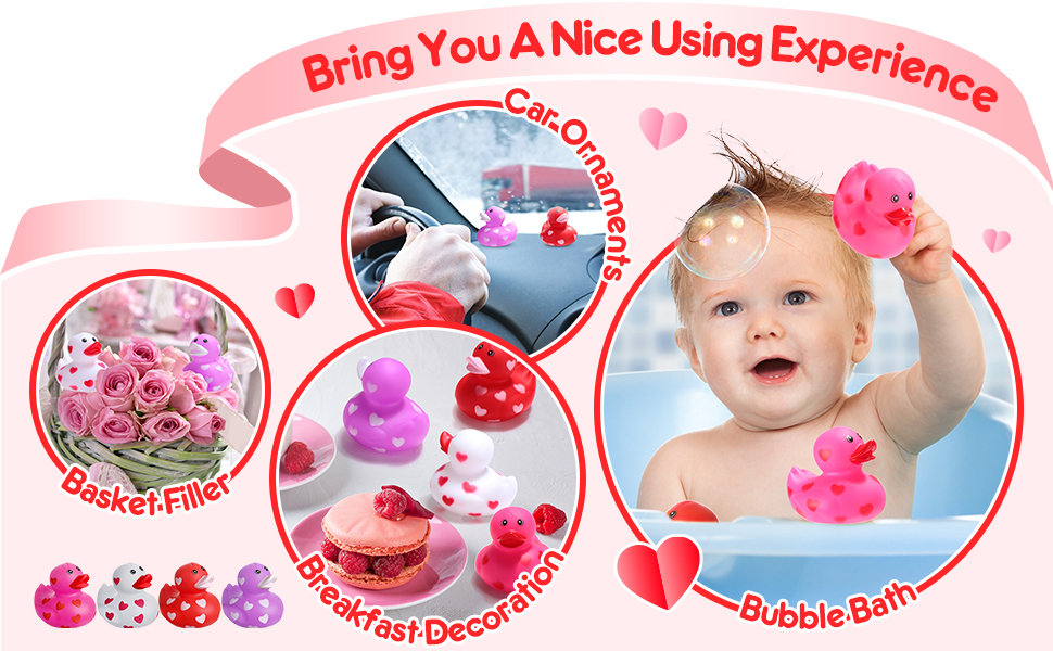 Safe and Reliable: the Valentine ducks are made of rubber material, soft and reliable, can float on the water, not easy to break or fade, have a long service life, little ones can play safely when bathing, adding more joy and laughter, and letting them learn to enjoy the bath time