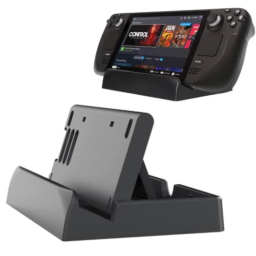 The Steam Deck Dock stand has a silicone anti-skid pad, which is more stable during use.Steam Deck gaming console Stand Bring your gaming to new heights by placing your Steam Deck onto this playstand.Gain a superior view of the console’s screen and have a more enjoyable time playing games by yourself or in a group!The play stand holds your Steam Deck securely in place and keeps it steady Portable Convenience A great sidekick for the Steam Deck device, the lightweightPortable play stand offers a space-saving collapsible design, making it easy to slip into a backpack or bag.Take the Playstand for Steam Deck along for fun, enhanced gaming wherever you go.