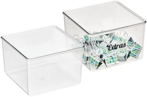 INSTANT ORGANIZATION: Store all of your desk and home office items in one convenient place; Perfect for staplers, pencil sharpeners, calculators, binder clips, rubber bands, glue sticks, memo pads, rechargeable batteries, markers, pens, push pins, binder clips and erasers; This box is great for holding small stationery and mailing items like postage stamps, rubber stampers, ink pads, note cards, thank you notes, labels and more; Also handy for scrapbooking, arts and craft; Set of 2 Bins