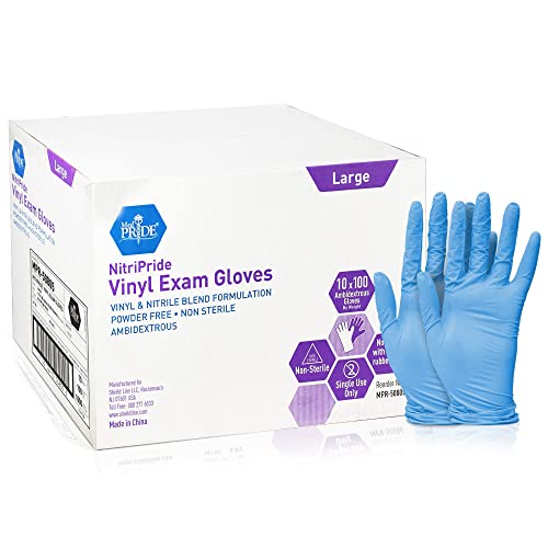 EXCELLENT QUALITY DURABLE NITRIPRIDE VINYL – NITRILE BLEND GLOVES: Made of the highest quality vinyl and Nitrile materials, the Medpride latex-free gloves are extra durable yet comfortable to your skin. Stronger and thicker than regular nitrile gloves, they offer improved tactile sensitivity and work great for both commercial or industrial use!